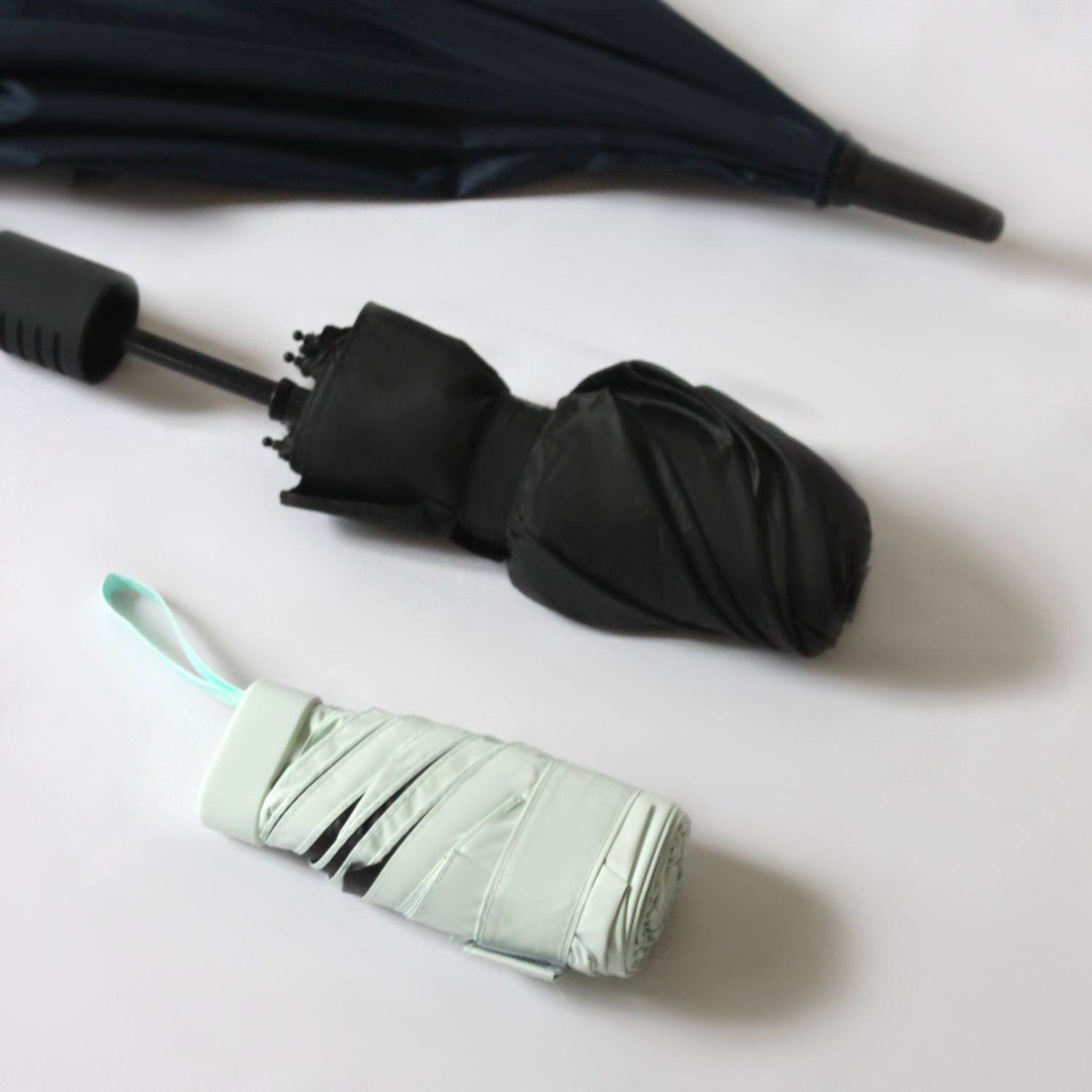 Un parapluie aussi grand qu’un smartphone une fois plié, protégé dans un étui rigide qui se glisse partout.